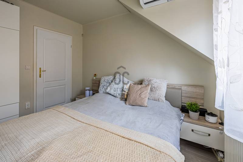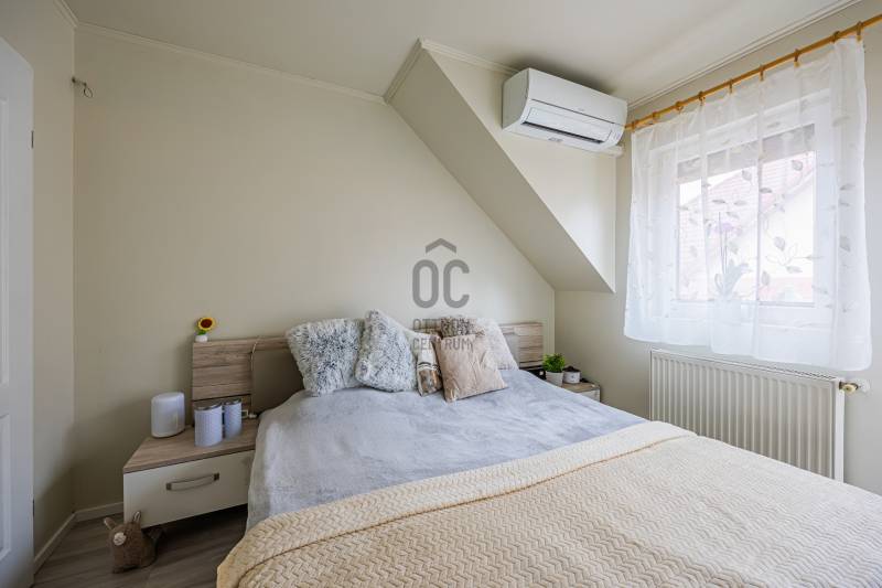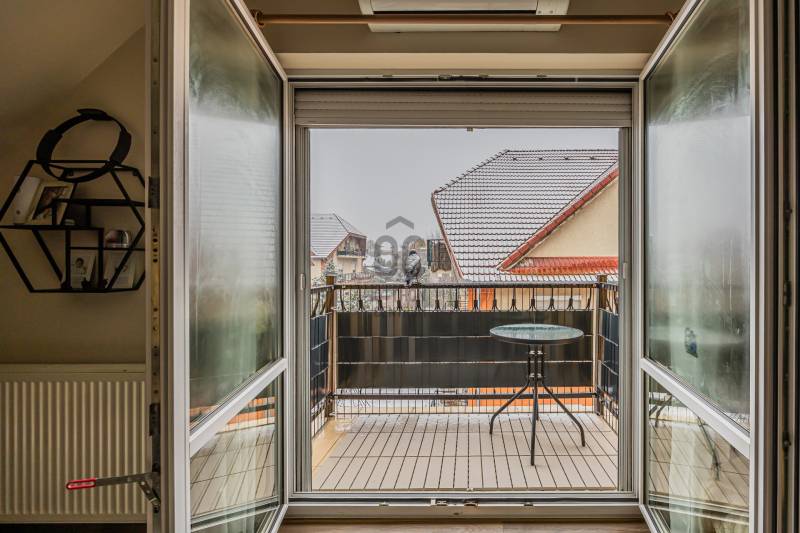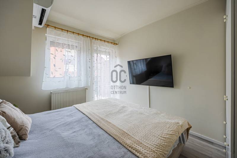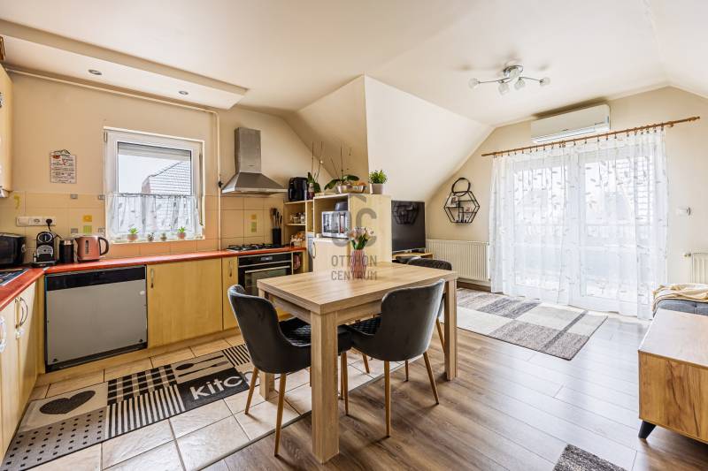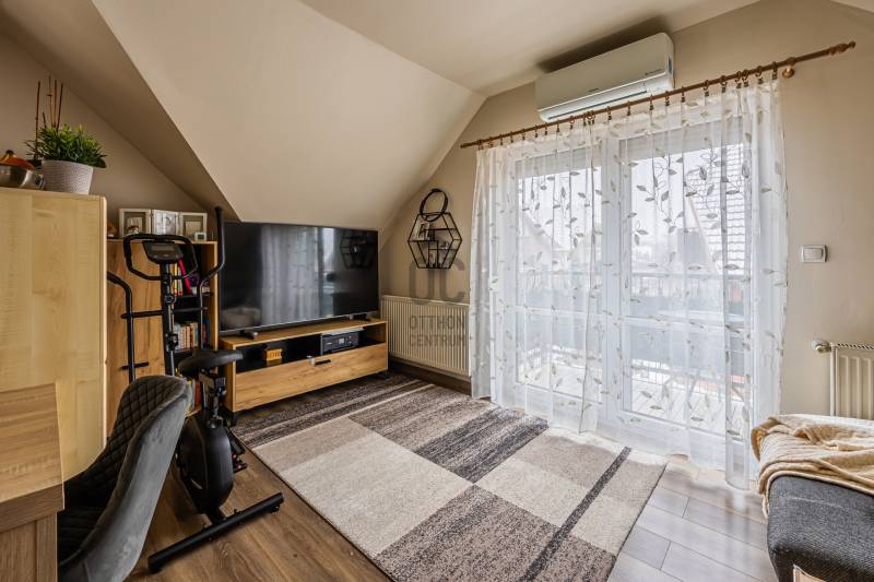 A 2005-ben épült tégla lakás a népszerű ALAGLIGET LAKÓPARKBAN található.Az INFRASTRUKTÚRA kiváló, a környék rendezett, a szomszédság barátságos, családias.A ház ZÁRT közös KERTJÉBEN KÉT JÁTSZÓTÉR is van, ahol a gyerekek biztonságban játszhatnak.A kimondottan JÓ ELOSZTÁSÚ, TÁGAS otthon ragyogó állapotban van.Fekvésének köszönhetően télen is VILÁGOS, nyáron pedig nincs hőség.EXTRÁK: szúnyogháló, redőny, hűtő-fűtő inverteres klíma, riasztó kiállás, beépített előszobai, fürdőszobai és kamra szekrény, aktív szenes beépített vízszűrő,kimondottan alacsony rezsi, két erkély.Az elmúlt 2 évben A LAKÁS FEL LETT ÚJÍTVA:-új laminált padló,-tetőtéri ablak, -napelemes, elektromos redőny,-új fürdőszoba bútor,-egyedi készítésű mosókonyha bútor,-1 éves új beépített sütő (electrolux) és mosogatógép (bosch) a konyhában,-2 db hűtő-fűtő klíma (Samsung és Mitsubishi)A lakás HELYISÉGEI: amerikai konyhás nappali, két különnyíló hálószoba, fürdőszoba, háztartási helyiség, külön wc.Minden szoba NAGY ABLAKOS, fenyőfákra, vagy rendezett lakóparki környezetre néz és KÉT SZOBÁNAK is van SAJÁT TERASZA.A lakás RÉSZBEN TETŐTÉRI, az egyik hálószoba oldalfala és a nappalinak a sarka csapott, így a nettó 63 nm bruttóban 68 nm-t tesz ki.Az összes többi fala egyenes, amitől tágas, JÓL BERENDEZHETŐ.A TETŐTÉR ELŐNYEI:-A csapott résznél \"hiányzó\" légteret NEM KELL BEFŰTENI, ami csökkenti a rezsinket.-A közel 70 nm-es lakás nettóban 63nm (58+fél terasz), így KEVESEBB A KÖZÖS KÖLTSÉG, hiszen azt csak a nettó terület után kell fizetni.-Tetőtéri lakás mindig KUCKÓS, HANGULATOS, ROMANTIKUS, mivel általában a legfölső szinten van, ahová nem jön más.-Fölső szint lévén KÖRBE SÜTI A NAP, ami szintén a téli fűtés számlát csökkenti.Ez a lakás nagyon jól kereszt-huzatolható, szellőztethető, így a nyári hőség sem jelent gondot, a KLÍMÁT szinte nem is kell használni.A lakáshoz EGY ZÁRT ÉS EGY NYITOTT TÉRKÖVEZETT beálló is tartozik.A lakás FENNTARTÁSA KEDVEZŐ, a TELJES REZSI télen 28e, nyáron pedig mindössze 18 ezer forintból kijön!!!A konyhabútor gépekkel a vételár részét képezi.5 perc sétán belül van az új általános iskola, ovi, bölcsi, játszótér, kisbolt, gyógyszertár, háziorvosi rendelő és az ingyenes buszjárat, amely a vasútállomásra visz. 2 perc sétára van pékség, zöldséges, közért, cukrászda, pizzéria, termelői piac.Autóval 5-7 percen belül hipermarketek és minden egyéb elérhető.M2, M0, M3 néhány perc alatt elérhető.Hívjon bizalommal a hét bármely napján!Ez az ingatlan a \"Felező csomag\" megbízási portfólióhoz tartozik. Részletek az Otthon Centrum weboldalán.