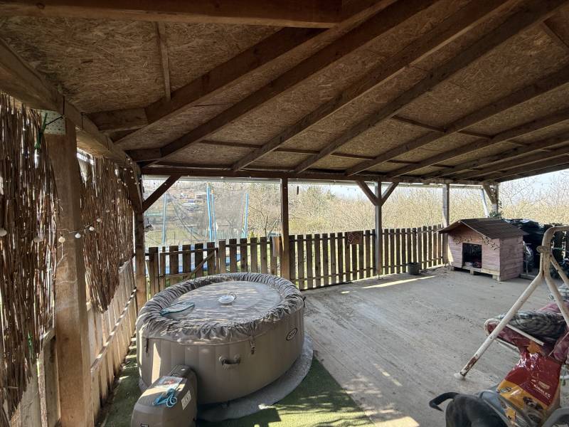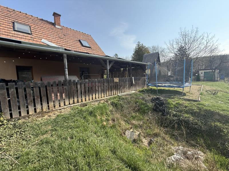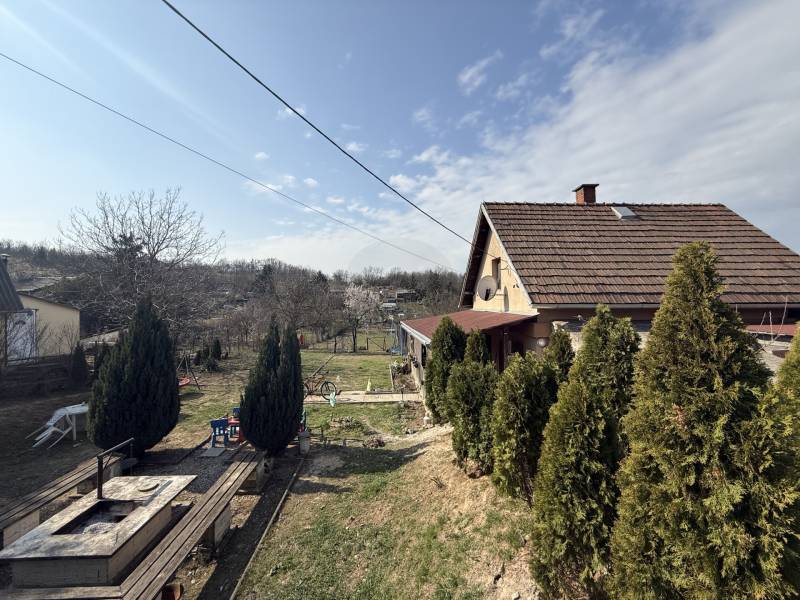 Eladó a Szarvashegy egyik legszebb pontján egy 64 m²-es, tégla építésű hétvégi ház, amely egy 2066 m²-es, teljesen körbekerített, két utcára nyíló telken helyezkedik el. A különleges elhelyezkedésnek köszönhetően a birtok egyszerre kínál csodálatos panorámát, nyugalmat és kiváló fejlesztési lehetőségeket.A ház jellemzőiA 64 m²-es lakótér praktikus elosztású:• Földszint: konyha–étkező, nappali, fürdőszoba + WC • Hangulatos, boltíves faajtón keresztül elérhető kb. 20 m²-es hűvös pince • Tetőtér: 2 kényelmes méretű szoba + külön WC A házat körülöleli egy közel 70 m²-es, L alakú fedett terasz, ahonnan páratlan kilátás nyílik a környező tájra – ideális hely pihenésre, baráti összejövetelekre.Műszaki tartalom• Tégla építés, 10 cm szigeteléssel • Cserépfedés • Villany- és vízhálózat kb. 10 éve felújítva • Vízellátás kútról, vízlágyító rendszerrel • Fa nyílászárók • Fűtés: kandalló + elektromos panelek Telek és környezetA teraszosított telek kiválóan kihasználható, a hegyoldali fekvés ellenére több sík pihenőrész került kialakításra.• Rendezett, tujákkal szegélyezett kert • Kiépített szalonnasütő – tökéletes családi, baráti programokhoz • A telken található egy 70 m²-es, beton alapú féltetős építmény, amely garázsnak, műhelynek vagy tárolónak is ideális Extra lehetőségA telek alsó, külön utcáról is megközelíthető része teljesen leválasztható és beépíthető, így kiváló befektetési vagy bővítési potenciált kínál.
