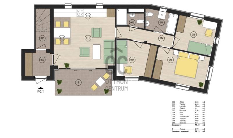Az ingatlan a földszinten helyezkedik el, terasz kapcsolatos.Projekt bemutatásaDebrecen kedvelt, és egyik legértékálóbb részén, a Hatvan Utcai kert csendes utcájában, közel a Kenézy kórházhoz épül, egy 5 lakásos társasház.Az ingatlan a legmodernebb építőanyagokkal, szerkezeti elemekkel lesz megépítve.Minden lakás terve átgondolt, élhető tereket tartalmaz, jó kiosztású, modern elrendezésű.Várható átadás : ha minden jól megy 2026 év vége, de max 2027 tavasza.A társasház felépítése : Földszinten : 1 db lakás ( 74,42 m2 ) + teraszkapcsolattal ( 9,77 m2 ) , 5 db gépkocsitároló és 5 db tárolóEmelet : 2 db lakás erkéllyel ( egyik lakás :74,42 m2 + 9,77 m2 erkély , a másik lakás : 62,87 m2 + 4,1 m2 erkély )Tetőtér : 2 db lakás ( egyik lakás : 57,2 m2 , a másik lakás: 52,18 m2 )Műszaki jellemzői :- Leier 30 NF tégla főfalak- Leier 10 Nf tégla válaszfalak- homlokzati, lábazati szigetelés : 15 cm polisztirol- nyeregtetős tetőszerkezet, betoncserép héjazással- nyílászárók : műanyag , 3 rtg - ű üvegezés a 6 légkamrás profilban ( prémimum német minőség, szinezett kivitelben )- fűtés : levegő - víz hőszivattyú alkalmazással lesz megvalósítva, padló hőleadókkal , vizes helyiségekben törölköző szárítóval - árnyékolás : elektromos vezérlésű aluminium redőny- erkély : edzett üveg betétekkel- kaputelefonos és kódzárós beléptető rendszer- udvar : térkövezés, füvesítés, parkosítás, kandellábelek az udvaron kivitelezésre kerülnekMűszaki tartalom:- beltéri ajtók : borovi dekorfóliás, 5 féle választható szinben- hidegburkolat : 8.200 Ft/m2 bruttó ár- melegburkolat : 8.500 FT/m2 bruttó ár- zuhanykabin : 89.280 Ft/db nettó ár- mosdó : 25.500 Ft/db nettó ár- fürdőkád : 101.500 Ft/db nettó ár- beépített wc : 58.600 Ft/db nettó ár- zuhany csaptelep : 26.280 Ft/db nettó ár- mosdó csaptelep : 25.700 Ft/db nettó ár- kádtöltő csaptelep : 29.500 Ft/db nettó árAz ingatlan előnyei : nagyon jó lokáció, kis lakóközösség, modern kivitelezés, a korszerű technológiák alkalmazása miatt kiváló energetikai besorolás, alacsony fenntartási költség, stb...Ha felkeltettem az érdeklődését, kérem hívjon bizalommal, akár hétvégén is, adok tájékoztatást, és amennyiben érdeks lehet a helyszínen bemutatom az ingatlant.Köszönöm, hogy elolvasta !!!