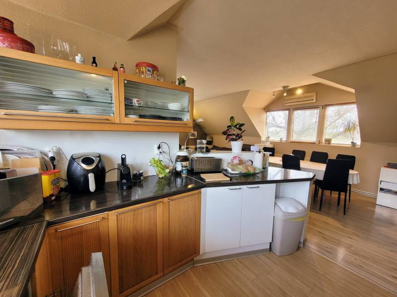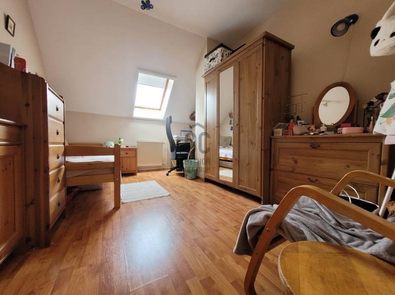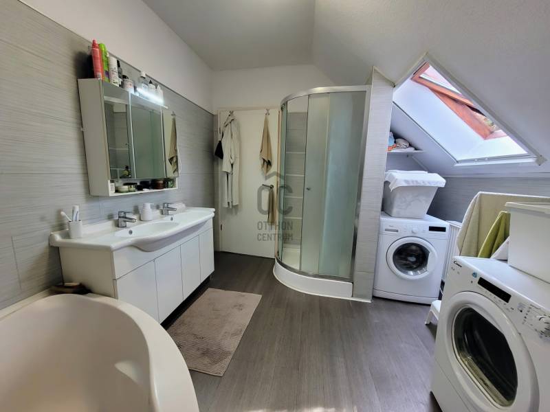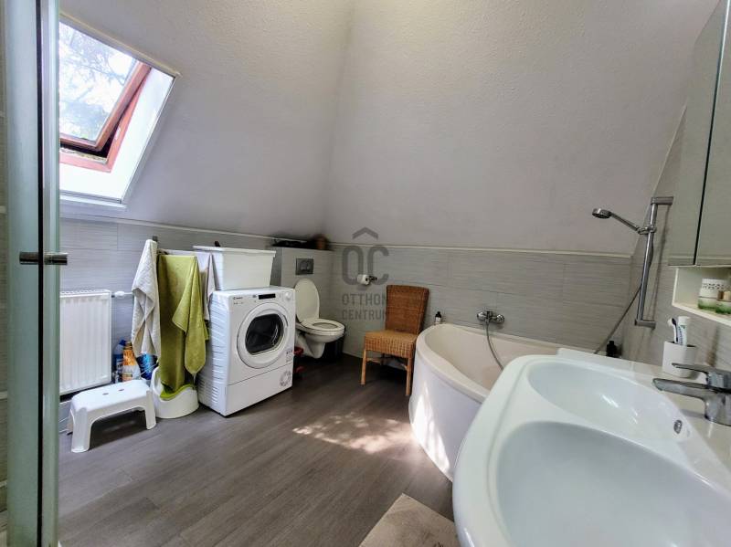 Kerepes legszebb részén, egy csendes utcában található a kétszintes, két külön bejárattal rendelkező ház. Miért válaszd ezt?✅  Mindkét szint összkomfortos, saját bejárattal, akár teljesen szeparált élettérrel -lásd alaprajz  ✅ Tágas, jó elrendezésű terek, az épület körbe napozottsága kiváló  ✅ Az alsó szinten előtér, nappali, konyha (jelenleg tároló), hálószoba,  gardrobe helyiségek, felújított fürdőszoba, háztartási helyiség találhatóak, valamint a garázs  ✅ Az emeleten egy nagy méretű, gépesített amerikai konyhás nappali, étkező, 3 hálószoba, fürdőszoba-wc (sarokkáddal és tusolóval), gardrobe és egy plusz kézmosós wc is található. ✅ Tágas, privát terasz, panorámás erkély és egy kellemes, ősfákkal körülvett és elzárt kert  (benne hinta, grill és kerti fészer) áll rendelkezésre a családi pihenéshez, szabadidős tevékenységekhez  ✅ A két szintes ingatlan 205 nm-es,  30 nm-es garázzsal (elektromos garázsajtó), s 2 udvari autó beállóval egy 717 nm-es telken fekszik  ✅ Jelenlegi formáját egy bővítés/ korszerűsítés során 2006-2010 körül kapta ✅  Az elmúlt időszakban a fűtésért (radiátoros hőleadással) és melegvíz ellátásért felelős kazánt cserélték ki a tulajdonosok, modern Bosch készülékre, ill. a fürdőszobákat felújították ✅ Emeleti nappalija klimatizált, s látványkályhával felszerelt.  ✅ A nyílászárók többsége műanyag, egyes helyiségekben ahol a tájolás indokolja, redőnyöket szereltek fel  ✅ Födémszigetelést, párazáró fóliát kapott az ingatlan, melynek tetöszerkezete kiválóan alkalmas napelem rendszer telepítésére is, s falai vastag téglából épültek ✅ A villamos hálózat 25 Amperes  ✅ Csendes környék, aszfaltos, rendezett utca✅ Szánkópályás domboldal az utca végén, a másikoldalon őzikék, fácánok által lakott gyönyörű panorámás szőlős ligetek ✅ Infrastruktúra: minden alapintézmény pár perc sétára – iskola, óvoda, bölcsőde, önkormányzat, gyermekorvosi rendelő, gyógyszertár, posta✅ Bevásárlás gyalogosan 5–10 percre:◦ Coop, CBA, zöldséges, virágbolt, pékségAutóval elérhető nagyobb üzletek, 5–10 perc alatt:Penny,  Tesco, Lidl, Aldi, Auchan, Bauhaus, Rossmann Decathlon✅    Örs vezér tere – 25-40 perc autóval✅  Tömegközlekedés:◦ HÉV állomás 10 perc séta – 25 perc az Örs vezér terére◦ helyi buszmegálló pár percre✅    Autós megközelítés:◦ M0 / M3 / 3-as főút 3–5 perc◦ Budapest határa ~15 perc alatt elérhetőAmennyiben kérdéseid merülnének fel, bizalommal keress minket, hiszen célunk, hogy a lehető legjobb döntést hozd meg az ingatlanvásárlással kapcsolatban.