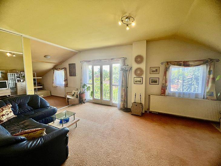 Csillaghegy Duna felőli oldalán ELADÓ egy 125 négyzetméteres BELSŐ KÉT SZINTES ízléses lakás 100 négyzetméteres kertkapcsolattal.Egy három lakásos 80-as években épült téglaépítésű szigetelt ház, 1. emeletén található.A dél-nyugati fekvésű lakás alsó szintjén található a tágas amerikai konyhás nappali beépített kandallóval és egy erkély, a felső szinten pedig 2 tágas szoba és egy félszoba, 2 nagyméretű fürdő és egy erkély.Panorámás kilátás nyílik a Hármashatár-hegyre és Róka-hegyre az ingatlan minden ablakából és az erkélyekről is.A nyílászárók műanyag thermo üvegesek.A lakás fűtéséről és a melegvízről kombicirkó gondoskodik.Az ingatlanhoz tartozik 30 négyzetméternyitároló és VÁSÁROLHATÓ mélygarázsban autóbeálló is.Környékről:Közelben minden olyan szolgálatás megtalálható amire szüksége lehet a mindennapokban (kisebb élelmiszer boltok, piac, éttermek, gyógyszertárak). Gyerekes családoknak nagyon ideális hiszen játszóterek, Óvoda, Iskola, Egyetem van a közelben.Tömegközlekedés szempontjából is tökéletes hiszen pár perc sétára található számos buszmegálló, illetve a H5-ös hév.FINANSZÍROZÁS:Banki finanszírozással is megvásárolható, melyben irodánk ingyenes tanácsadással áll rendelkezésükre!VEVŐINK RÉSZÉRE A KÖZVETÍTÉS DÍJTALAN!A beépített bútorzat a vételár részét képezi.A hirdetésben szereplő adatok tájékoztató jellegűek.