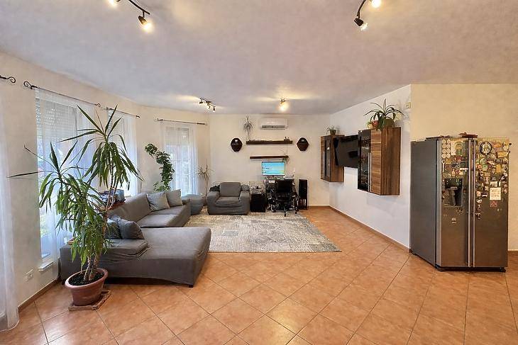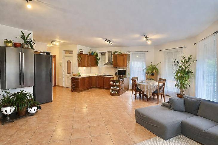 Eladó igényes egyszintes ikerházfél Dunakeszi közkedvelt részén!Dunakeszi kertvárosi részén, csendes és családbarát környezetében kínálunk megvételre 103 nm-es, kiváló elosztású ikerházfelet, amely csak a garázsnál ér össze. Az ingatlan masszív szerkezetű, 30-as Porotherm téglából épült, beton födémmel, valamint 5 cm-es szigeteléssel rendelkezik, így stabil és jól fenntartható otthont biztosít.A praktikus elrendezésnek köszönhetően helyet kapott egy amerikai konyhás nappali étkezővel, valamint 3 külön nyíló hálószoba. A fürdőszoba tágas, kényelmes nagy sarokkáddal, a WC pedig külön helyiségben található.A komfortérzetről kombi cirkó kazán gondoskodik radiátoros hőleadással, amely a fűtést és a melegvizet is biztosítja, továbbá egy hűtő-fűtő klíma is rendelkezésre áll.Az ingatlan része egy 15 nm-es fűtött garázs, valamint egy gondosan kialakított kert, ahol öntözőrendszer és fúrt kút segíti a zöldfelület karbantartását.Minden ablak redőnnyel és szúnyoghálóval felszerelt.A lokáció kiváló: iskola, óvoda sétatávolságra, a tömegközlekedés pedig néhány perc alatt elérhető, így a mindennapi közlekedés is egyszerűen megoldható.Az ingatlan tehermentes és hitelezhető, hitel felvételben a kollégáink díjmentesen tudnak segíteni, amennyiben meglévő ingatlanának eladása szükséges a vásárláshoz irodáink késéggel állnak rendelkezésére.