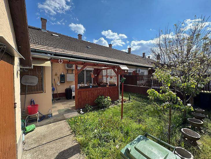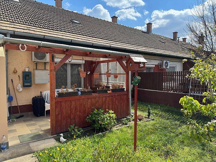 EGY SZOBÁS KERTKAPCSOLATOS LAKÁS ÚJHEGYENEladó 46nm-es, kertkapcsolatos,szigetelt társasházi lakás Budapest X. kerületében, Újhegyen.A környék rendezett, ugyanakkor kiváló közlekedéssel rendelkezik:A 28 és a 28A villamos, valamint a 95 és 195-ös buszok közvetlen összeköttetést biztosítanak az M2-es metróval. A lakás jó elosztású, tulajdonlap szerint 38nm-es, azonban egy átalakítással 2 különnyíló szobássá alakítható, ugyanis a lakáshoz hozzá lett építve egy kb.8nm-es nyári konyha, ami ki tudja váltani a jelenleg konyha-nappaliként használt helyiséget.A lakás fűtéséről konvektor, valamint hűtő-fűtő klíma gondoskodik.Esztétikailag szép állapotú, valamint réz villanyvezetékek, illetve műanyag nyílászárók kerültek beépítésre.A nagyjából 40nm-es, lekerített, rendezett kertben található egy tároló, valamint biztosítja egy saját kert minden további előnyét.Az ár irányár.Vevőink számára a közvetítés díjtalan.