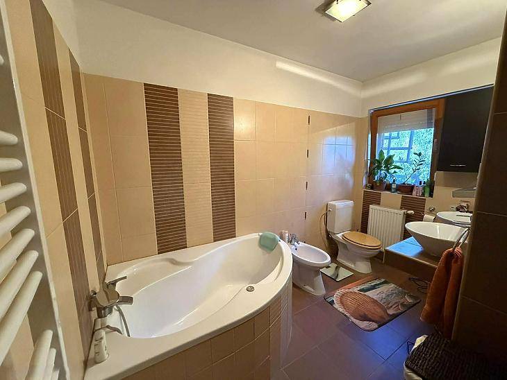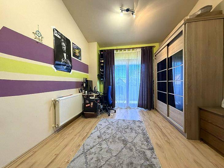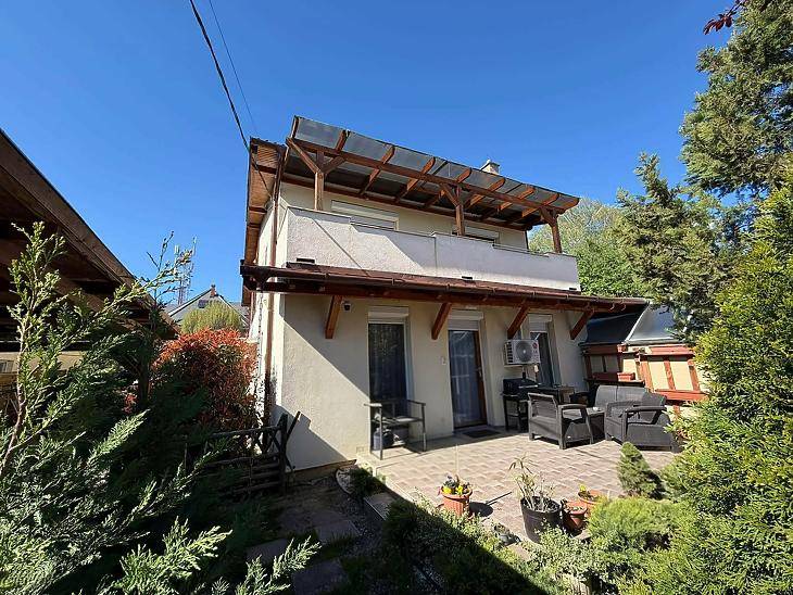 XVII. KERÜLETBEN, RÁKOSCSABA-ÚJTELEPEN ELADÓ EGY 110 NM-ES, JÓ ÁLLAPOTÚ, KÉTSZINTES IKERHÁZFÉL, 215 NM-ES TELEKKEL, TÁROLÓVAL ÉS FEDETT KOCSIBEÁLLÓVAL.Az ingatlan B30-as Porotherm téglából épült, beton alappal és vasbeton gerendával.A homlokzat 10 cm-es dryvit szigetelést kapott, a tető kőzetgyapottal szigetelt. A nyílászárók minden helyiségben 3 rétegű, dupla üvegezésű fa ablakok, redőnnyel felszerelve. A vezetékek cseréje megtörtént.A fűtést és a melegvíz-ellátást kombi cirkó biztosítja, a földszinten padlófűtéssel kiegészítve. A nappaliban hűtő-fűtő klíma és kandalló is található. A szobák parkettásak, a többi helyiség járólappal burkolt.KIALAKÍTÁS: Földszint: amerikai konyhás nappali + étkező, szoba, kamra, zuhanyzós fürdőszoba + wc, közlekedő, előszoba, terasz.Emelet: 3 szoba, kádas fürdőszoba + wc, közlekedő, erkély.A KÖRNYÉK: Rákoscsaba-Újtelep csendes mellékutcája. A közelben, pár perc sétára található a Rákoscsaba vasútállomás, valamint a 176E, 198 jelzésű buszok és a 998-as éjszakai járat. Közelben található bevásárlási lehetőség, gyógyszertár, óvoda, iskola, játszótér. Az M0-ás autópálya könnyen elérhető.IRÁNYÁR: 149.8 M FT VEVŐINK RÉSZÉRE A KÖZVETÍTÉS DÍJTALAN!A hirdetésben szereplő adatok tájékoztató jellegűek.