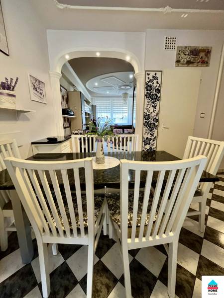 Balatoni életérzés, különleges ajánlat!Balatonpart és Strand 450m!Balatonbogláron, csendes utcában eladó ez a 90m2-es belső kétszintes tégla lakás teljes bútorzattal, 50m2-es emeleti napozóterasszal, szép panorámával, saját garázzsal és kerttel!A lakást az első emeleten található ahová a zárt kb 100m2 nagyságú saját kerttől juthatunk fel. A belső két szintes lakás alsó részén nagy Nappali, Felszerelt Konyha és Étkező, Közlekedő nagy beépített szekrényekkel, Fürdőszoba (zuhany + Wc), Kamra, és hatalmas DNY-i 50m2-es emeleti terasz tartozik ami részben fedett és teljesen privát! A felső szinten további három hálószoba, gardrób, fürdőszoba káddal és WC. Az ingatlan fűtése elektromos (3fázis), a hűtésről mindkét szinten külön klíma gondoskodik. A meleg víz ellátást gázkazán biztosítja valamint gáz fűtés is visszaállítható igény esetén. Szép burkolatok, jó minőségű műanyag ablakok, jó térkihasználás... igazi tágas világos lakás!A lakáshoz saját teljes értékű különálló garázs tartozik. A társasház zárt udvarában saját közösségi kertel rendelkezik... magaságyások, gyümölcsfák, kemence, grill, pince és kerti kiülő és sok zöldfelület!Nyaralónak, Állandó lakhatásra, Befektetésnek is kiváló választás!Keressen a részletekért és legyen Ön is a Balaton szerelmese!Plattensee-Lifestyle, Sonderangebot!Plattensee und Strand 450 m entfernt!In Balatonboglár, in einer ruhigen Straße, steht diese 90 m² große, zweistöckige Backsteinwohnung mit kompletter Möblierung zum Verkauf. Sie verfügt über eine 50 m² große Sonnenterrasse im Obergeschoss, einen herrlichen Panoramablick, eine private Garage und einen Garten. Die Wohnung befindet sich im ersten Obergeschoss und ist vom ca. 100 m² großen, umzäunten Privatgarten aus zugänglich. Im unteren Bereich der zweistöckigen Wohnung befinden sich ein großes Wohnzimmer, Einbauküche mit Essbereich, ein Flur mit großen Einbauschränken, Badezimmer (Dusche + WC), Speisekammer und eine riesige, nach Südwesten ausgerichtete, 50 m² große Terrasse im Obergeschoss, die teilweise überdacht und komplett privat ist. Im Obergeschoss befinden sich drei weitere Schlafzimmer, ein Bürozimmer, Badezimmer mit Badewanne und ein WC. Die Wohnung wird elektrisch (Drehstrom) beheizt, die Kühlung erfolgt über separate Klimaanlagen auf beiden Etagen. Warmwasser wird über einen Gasboiler bereitgestellt, und die Gasheizung kann bei Bedarf wieder eingeschaltet werden. Schöne Beläge, hochwertige Kunststofffenster, optimale Raumaufteilung ... eine wirklich geräumige und helle Wohnung!Die Wohnung verfügt über eine eigene, vollwertige Garage. Die Wohnanlage verfügt über einen eigenen Gemeinschaftsgarten im ummauerten Innenhof... Hochbeete, Obstbäume, Backofen, Grill, Weinkeller und Sitzbereich im Garten sowie viel Grünfläche!Eine ausgezeichnete Wahl als Ferienhaus, Hauptwohnsitz oder Kapitalanlage! Entdecken Sie weitere Details und lassen Sie sich vom Balaton verzaubern!