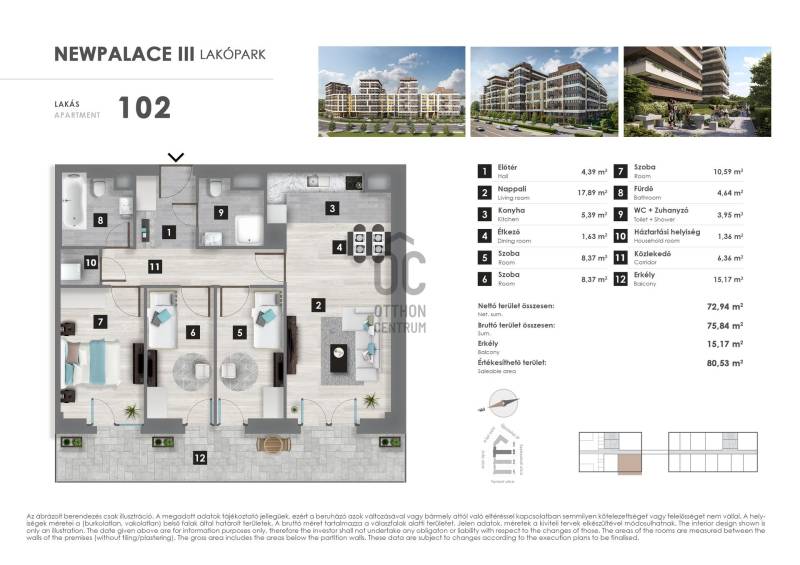 XIII. kerület – New Palace Lakópark III. ütem1. emelet | Nettó 73.23 m² | 15.17m² erkély | 4 szoba | 2026 év végén költözhető | 5% ÁFA visszaigényelhető a vételár egy részébőlModern, világos, energiatakarékos lakás eladó a Duna Plaza közvetlen közelében, dél-keleti fekvéssel, belső kertre néző erkéllyel, Prémium nyílászárókkal, mennyezeti hűtés-fűtéssel, alacsony rezsivel, Nyugodt környezetben, mégis minden karnyújtásnyira van: bevásárlás, sport, parkok, Váci úti irodafolyosóKözlekedés kiváló:M3-as metró, buszjáratok, Újpest vasútállomás, gyors kijutás az M3-as autópályára.Kötelező elektromos teremgarázshely vásárlás: 8,5M Ft.Kötelező 7 négyzetméteres tároló vásárlása: 5.6M Ft.Ideális otthonnak vagy befektetésnek a XIII. kerület legdinamikusabban fejlődő részén!