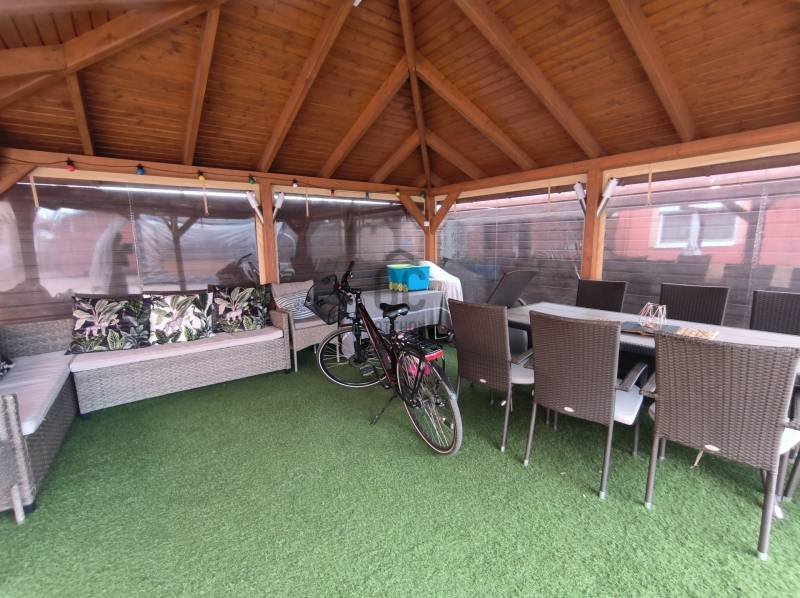 ***Amikor az otthon szó megtelik tartalommal! Ahol mindenkinek és mindennek meg van a helye!******Amikor a nagy alapterülethez alacsony rezsi párosul.....***Ebes központjában önálló helyrajzi számmal rendelkező, 5 szobás, felújított családi sorház, eladó!Az 1992-es építésű ingatlan az elmúlt években teljes körű felújításon esett át. Fűtése gázcirkó, padló és radiátor hőleadókkal. Jellemzői:-műanyag nyílászárók,-elektromos aluredőny-gépesített konyha-beépített bútorok- 2 szobához gardrób szoba-2 db fürdőszoba-3 db wc-vízlágyító rendszer-3 db inverteres klíma-riasztó és kamera rendszer--7,5 kw-os Napelem tárolóval-elektromos kapu és garázs-dupla garázs-elektromos autó töltő-3 fázis-homlokzati és födémszigetelés-térkövezett udvar A házban 5 tágas szoba található, amelyek világosak és barátságosak, emellett két modern fürdőszoba is rendelkezésre áll, ami a nagycsaládosok kényelmét szolgálja. A konyha és az étkező egy légtérben van, így családi és baráti összejövetelekre is kiválóan alkalmas. 2 szobához gardrób helyiség lett kialakítva, ami a hölgyek álmát valósítja meg. Az egész ingatlan az igényességet és a harmóniát árasztja, modern, fiatalos színvilággal. Korszerű energetikai berendezések, 7,5 KW-os napelem és a hozzá tartozó tárolónak, a hőszigetelésnek és köztes elhelyezkedésének köszönhetően alacsony a fenntartási költsége. A 30m2-es garázs akár 2 autó beállását is lehetővé teszi az elektromos kapukon keresztül. A házban a riasztó és-kamera rendszer is ki lett építve. A térkövezett udvarban található a nagy méretű, téliesíthető filagória, amelyet a vételár tartalmaz.Ha valaki otthon végezhető munkában, szolgáltatásban, szalonban gondolkodik, könnyen kivitelezhező, mert az egyik szoba önálló bejárattal is rendelkezik. A kiváló adottságokkal rendelkező ház ideális azoknak, akik a nagy város zsúfolt közlekedését fel szeretnék cserélni egy családias környezetre. Ebesen óvoda, két tannyelvű iskola, élelmiszerüzletek, orvosi rendelők is gyalogosan elérhetőek! A környék bőséges zöldterületekkel, parkokkal és játszóterekkel rendelkezik, ideális helyszínt biztosítva a családok számára. Közbiztonsága kiváló, itt gyermekei nyugodtan haza tudnak sétálni az iskolából ...Az ingatlan elhelyezkedése lehetővé teszi, hogy a mindennapi életét a természet közelségében élvezze, miközben a városi élet előnyeit is kihasználhatja . A BMW gyár autópályán pár perc alatt megközelíthető!Tehermentes ingatlan, rövid időn belül birtokba vehető!Csok+-ra alkalmas, hitelezhető!További felvilágosításért várom megkeresését!Ebes, eladó, családi ház, ikerház, sorház, felújított, 5 szoba, igényes, napelemes, garázs