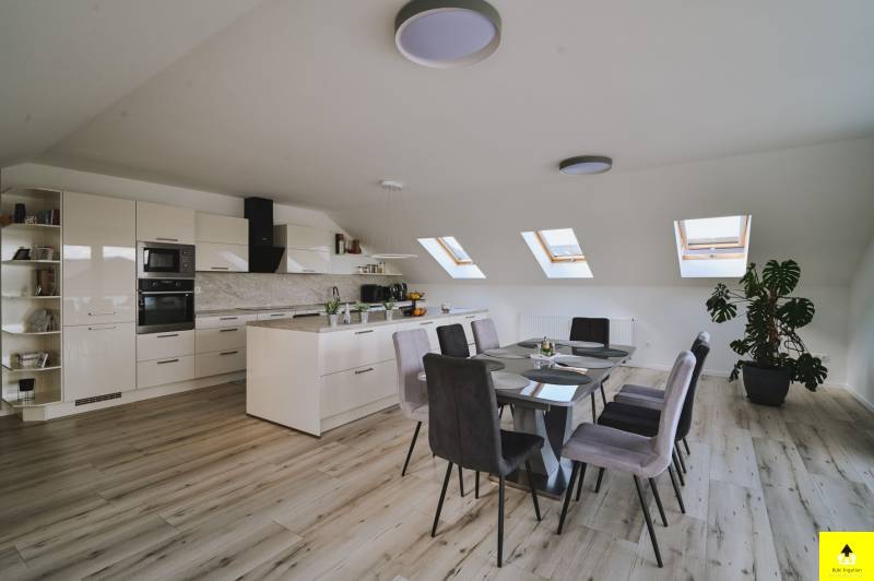 2023-ban átadott, igényes kivitelezésű, új építésű, 16 lakásos társasházban kínálunk megvételre egy igazán különleges hangulatú, tágas és rendkívül világos tetőtéri lakást Bükön, a Penny közelében.A 2. emeleten található, bruttó 158 m²-es, egy szinten elhelyezkedő otthon körben három erkéllyel rendelkezik, így minden napszakban élvezheted a természetes fényt és a panorámás kilátást. Kelet–dél–nyugati tájolása garantálja az egész napos világosságot, a nappaliból nyíló, 18 m²-es erkély pedig tökéletes helyszín a reggeli kávéhoz vagy az esti pihenéshez.Az ingatlan nemcsak látványos, hanem gazdaságos is: A++ energetikai besorolásának köszönhetően fenntartása rendkívül kedvező. Részben bútorozott, biztonsági bejárati ajtóval, klímával, valamint modern, applikációval vezérelhető automata redőnyrendszerrel felszerelt.Elrendezés:• hatalmas, egy légterű nappali–étkező–konyha (igény szerint további hálószoba kialakítható) • 2 külön nyíló hálószoba, mindkettő saját fürdőszobával A lakáshoz igény esetén nagyméretű garázs is vásárolható.Ez az ingatlan tökéletes választás azok számára, akik nemcsak egy lakást, hanem egy exkluzív, napfényes és jól alakítható otthont keresnek nyugodt környezetben.